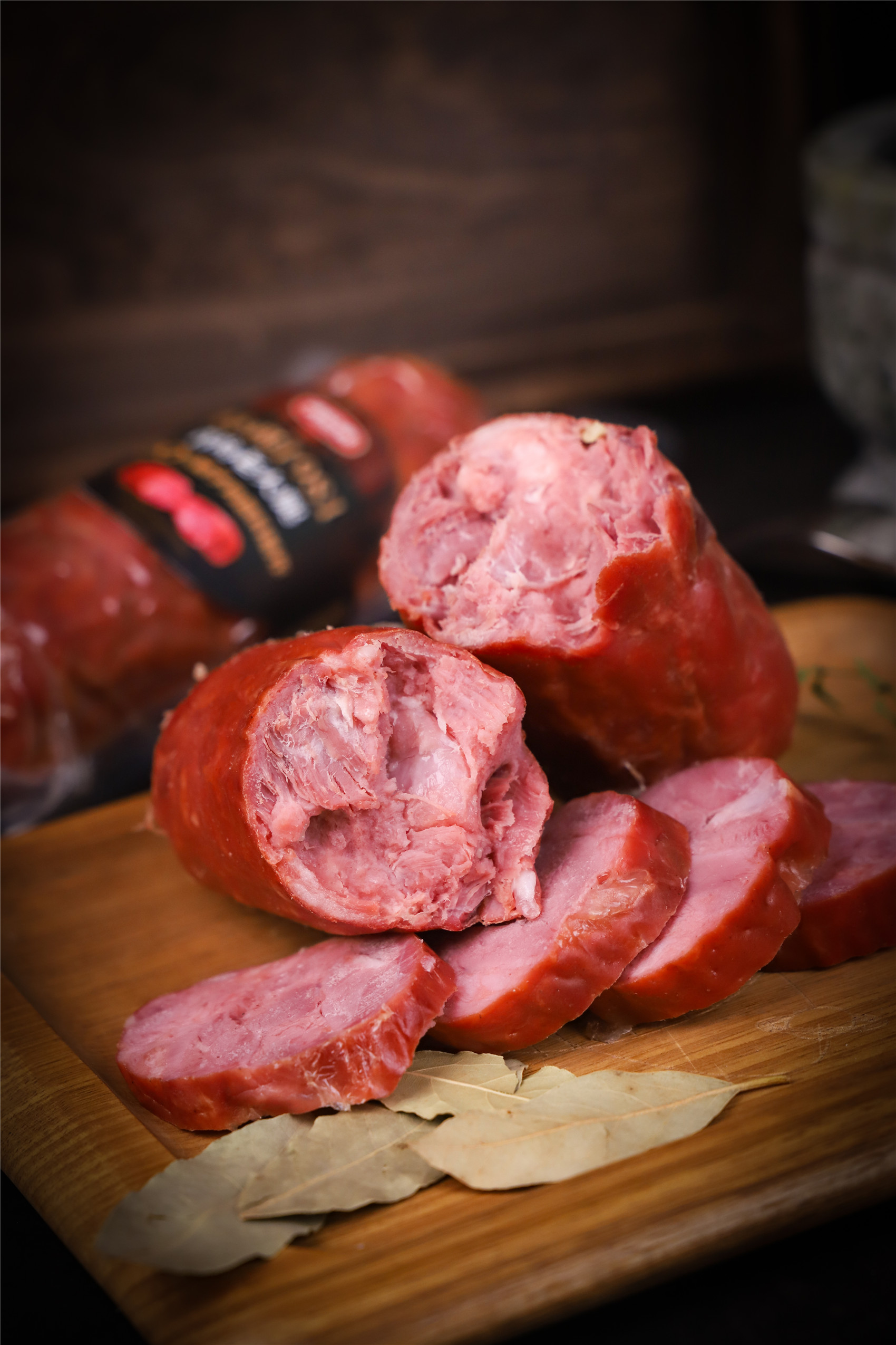 精选富有弹性的大块猪后腿肉,细抹浓盐,以地道的德国进口香料调味腌制。采用传统工艺,不添加淀粉,肉质感强,肉块明显。